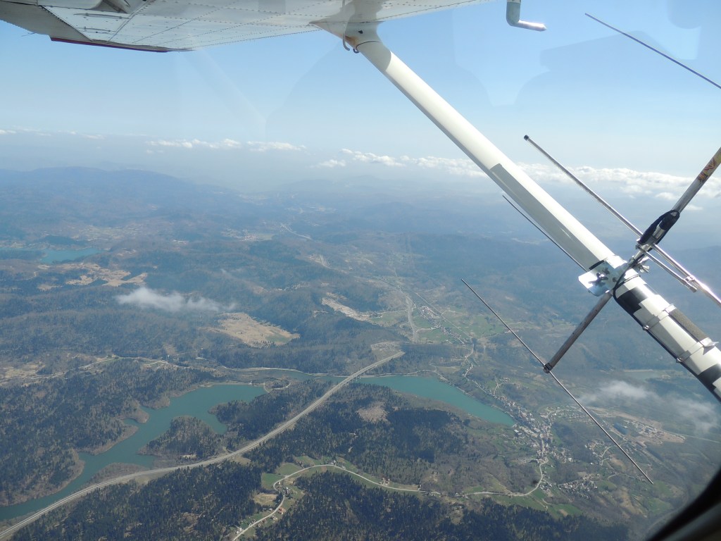Most wildlife collars are both VHF and GPS transmitters. The GPS locations are sent to the researchers remotely, whereas the VHF signal has to be tracked with an antennae receiver at closer proximity to the animal. The VHF radio signal is very useful as it allows researchers to continue tracking animals even if the GPS is faulty. However, without the GPS location as a guide, it’s difficult to know where to look for an animal to get close enough to pick up its VHF signal, especially for wide-ranging species like most large carnivores. Therefore, the most efficient approach is to conduct an aerial search, whereby the radio antennae are attached to the wings of a small plane. Luckily for me, Josip took me on one of these aerial searches and it was quite the experience to fly over Plitvice Lakes National Park listening out for the beeping of bear collars!