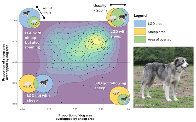 3. “So close yet so far: Movement patterns of livestock guarding dogs in a shared landscape in Romania”. Livestock guarding dogs play a critical role in protecting sheep and supporting coexistence with large carnivores like wolves and bears in the Romanian Carpathian Mountains. But how closely do they actually stay with their flocks? Using GPS collars on 36 dogs across 11 flocks, we found that while dogs are generally attentive (staying within ~100m at night and ~200m during the day), every individual roamed away from the flock daily, sometimes travelling up to 4 km away. This matters. Roaming can reduce guarding effectiveness and increase the risk of encounters with wildlife or people. Our findings highlight the importance of considering these dogs within broader social-ecological systems. We also show how low-cost GPS tracking can help identify dogs that may benefit from targeted management. Read the full paper here: https://doi.org/10.1002/2688-8319.70245